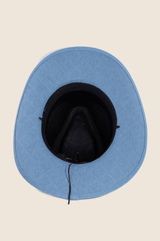 Rhinestone Mesh Pattern Denim Cowboy Fedora Hat