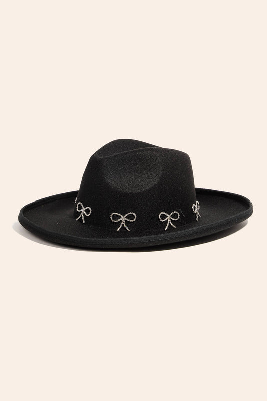 Rhinestone Ribbon Bow Charms Fedora Hat